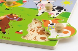 Ein unterhaltsames Holzpuzzle mit Motiven von Haustieren hilft Kindern, ihre Feinmotorik, Hand-Auge-Koordination und das Erkennen von Tieren zu entwickeln. Dank der großen Holzgriffe lassen sich die einzelnen Teile auch von den Kleinsten (18M+) leicht greifen.