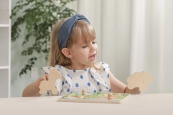 Das Einsetzen stärkt die Feinmotorik, die Auge-Hand-Koordination und die Geduld. Eine ideale Wahl für erste didaktische Spiele.