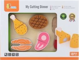 Jedes Stück Fleisch ist so gestaltet, dass es echte Lebensmittel realistisch imitiert. Kinder können das hölzerne Messer verwenden, um das Fleisch zu zerschneiden und dann mit Klettband wieder zusammenzufügen. Das Set ist eine großartige Ergänzung für jede Kinderküche und fördert kreatives Spielen.