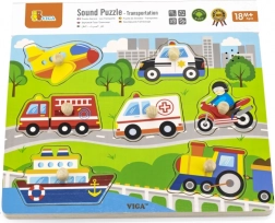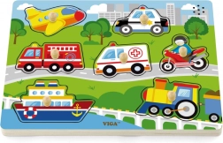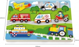 Das Puzzle enthält die folgenden Transportmittel: Flugzeug, Auto, Krankenwagen, Schiff, Feuerwehrfahrzeug, Motorrad und Helikopter. Die Aufmerksamkeit und das Gedächtnis von Kindern verbessern sich beim Spielen schnell. Empfohlen für Kinder ab 18 Monaten.