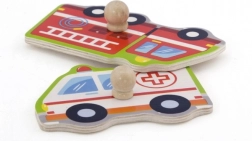 Dank der Holzgriffe lernen Kinder, die einzelnen Teile richtig zu handhaben und die Geräusche der Transportmittel zu erkennen.