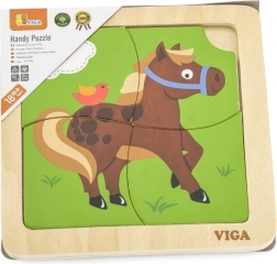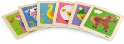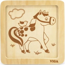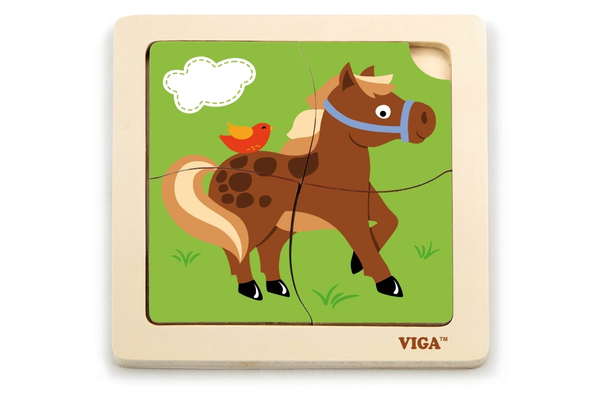 Dieses kompakte Holzpuzzle mit fröhlichem Pferd ist die ideale erste Puzzle-Erfahrung für Kleinkinder. Große, glatte Teile liegen gut in kleinen Händen und werden in den stabilen Holzrahmen eingesetzt, der das richtige Platzieren erleichtert.