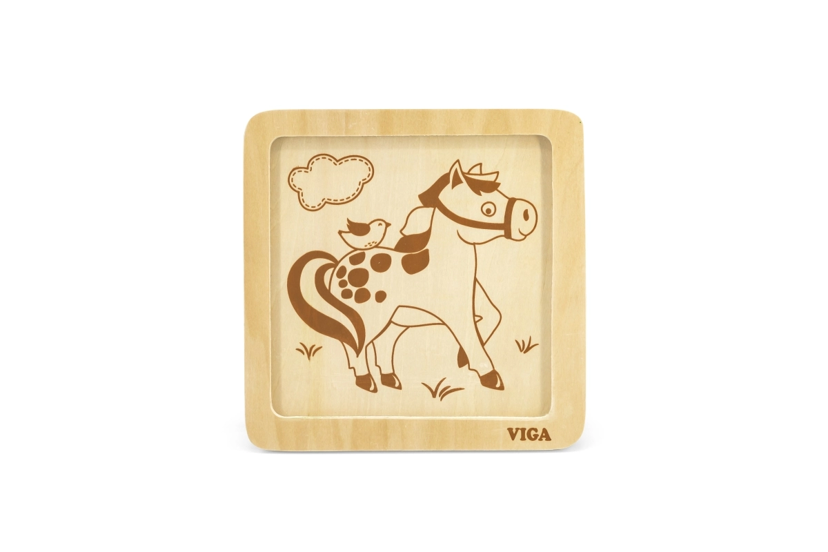 Das farbenfrohe Bild mit Pferd und Vögelchen fesselt Kinder und unterstützt die visuelle Wahrnehmung sowie das Erlernen von Farben und Formen.