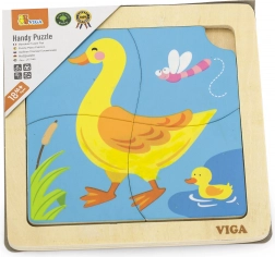 Das Viga-Holzpuzzle besteht aus vier thematischen Teilen, die einfach auf das Bildbrett montiert werden können. Jedes Teil ist aus hochwertigem Holz gefertigt und mit sicheren, ungiftigen Farben bemalt, um die Sicherheit der Kinder und der Umwelt zu gewährleisten.