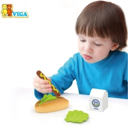 Dieses hochwertige Holzset von VIGA bringt Kindern realistisches Kochspiel näher. Der Hotdog mit Brötchen, Salat und Senf sowie der „Milchkarton“ fördern die Kreativität und vermitteln Grundlagen des sozialen Spiels. Dank der stabilen Holzausführung ist das Set ideal für den täglichen Einsatz.