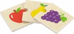 Jedes Teil besteht aus stabilem Holz mit glatten Kanten und auffälligen, farbenfrohen Illustrationen, die die visuelle Wahrnehmung unterstützen und zum weiteren Entdecken motivieren. Das Set eignet sich für das Spielen zu Hause und in Kindergärten – ideal für Aktivitäten wie Sortieren, Benennen und gemeinsames Lösen von Aufgaben.