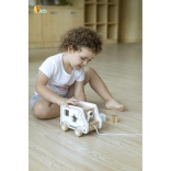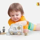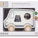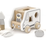 Dieses Holz-Nachziehspiel in Form eines Lastwagens vereint zwei beliebte Aktivitäten – das Nachziehen an der Schnur und das Einsetzen von Formen. Kinder entwickeln Formenkenntnis und räumliches Wahrnehmen, während sie sich bewegen und in fantasievolles Spiel mit dem niedlichen Auto eintauchen.