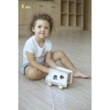 Die stabile Schnur ermöglicht es Kindern, das Auto überallhin mitzunehmen. Beim Nachziehen trainieren sie Bewegungskoordination und Gleichgewicht.