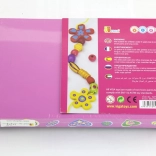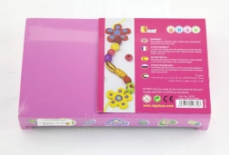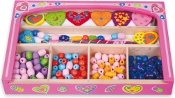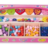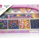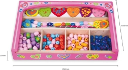 Enthalten sind bunte Holzperlen und Schnüre, sodass Kinder sofort nach dem Öffnen mit dem Basteln von Armbändern und Halsketten beginnen können.