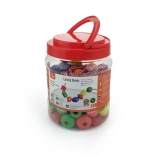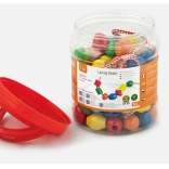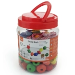 Die Kunststoffdose enthält große Holzkugeln und bunte Schnürsenkel, auf die die Kugeln aufgefädelt werden können. Größe der Perlen je nach Art ca. 2 x 2 cm. Verpackungsmaße ca. 16 x 12 cm. Enthält 90 Perlen und 5 Schnüre. Alter 3+.