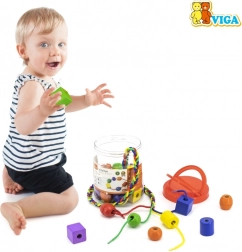 Das Auffädeln unterstützt den richtigen Griff, die Hand-Auge-Koordination und die Konzentration. Ideal für Vorschulkinder und frühes Lernen.