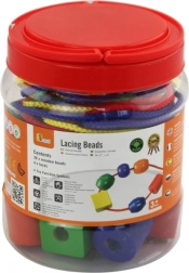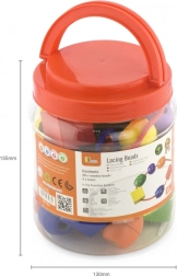 Dieses Set extra großer Holzperlen ist ein ideales Spielzeug für die frühe Entwicklung. Dank der kräftigen Farben und unterschiedlichen Formen üben Kinder das Sortieren, Zählen und ihre Kreativität, während sie Griffkraft und Konzentration stärken. Die Größe der Perlen ist auf Kinderhände abgestimmt, sodass das Auffädeln leicht und spielerisch gelingt.