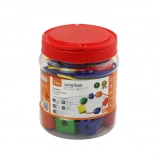 Die Perlen werden in einer robusten Kunststoffdose mit Deckel aufbewahrt, die das Transportieren und Verstauen erleichtert. Das Set bietet spielerisches Lernen zu Hause und im Kindergarten und ist eine tolle Ergänzung für Montessori-Aktivitäten.