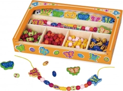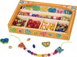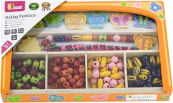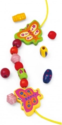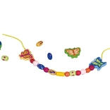 Das Auffädeln der Perlen trainiert den Griff, die Hand-Auge-Koordination und unterstützt Geduld sowie Konzentration bei Kindern ab 3 Jahren.