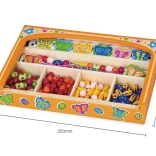Entdecken Sie die kreative Welt mit diesem Holz-Perlenset für Kinder. Bunte Perlen in verschiedenen Formen und Größen in einer praktischen Holzbox fördern Feinmotorik, Geduld und Fantasie. Ideal für Kinder ab 3 Jahren.