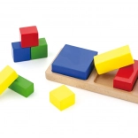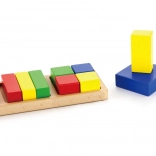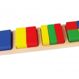 Dank der robusten Holzkonstruktion bietet dieses Spielzeug langanhaltende Haltbarkeit und Sicherheit beim Spielen. Die farbigen Blöcke lassen sich leicht in die vorgegebenen Öffnungen der Holzbasis einsetzen, was Kindern das räumliche Wahrnehmen vermittelt.