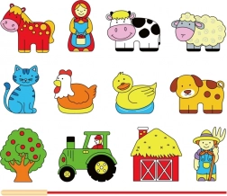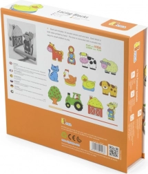 Die Klötze zeigen verschiedene Bauernhof-Formen wie Tiere, Traktor, Scheune und mehr, die kreatives Spielen und Geschichtenerzählen fördern.