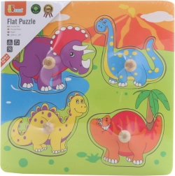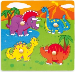 Dieses Holzpuzzle mit bunten Dinosauriern ist ein ideales Hilfsmittel zur Förderung der kindlichen Vorstellungskraft und Feinmotorik. Es besteht aus einer Unterlage und vier verschiedenen Dinosaurierformen mit Holzgriffen für einfaches Einsetzen.