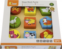VIGA bietet Holzpuzzle mit neun farbenfrohen Teilen an, mit denen Kinder Bilder von verschiedenen Tieren wie Kühen, Enten und Kaninchen zusammensetzen können. Das Spiel fördert die motorischen Fähigkeiten und das Erkennen von Farben und Formen. Dank der sicheren und ungiftigen Farben sind diese Puzzle ideal für kleine Kinder.