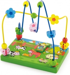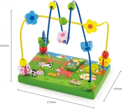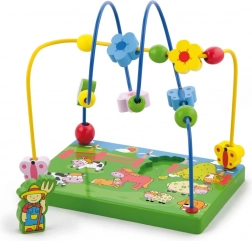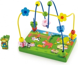 Das Spiel-Labyrinth mit Perlen auf Drähten fördert die Feinmotorik, die Koordinationsfähigkeiten und das logische Denken. Eine stabile Holzbasis mit Bauernhofmotiv und eine magnetische Bauernfigur laden zu kreativem Spiel und Entdecken ein. Ideal ab 18 Monaten.
