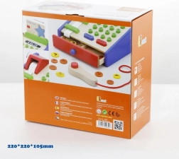 Die Kasse besteht überwiegend aus Holz und wird durch robuste Kunststoffelemente ergänzt. Ideal für das Kaufladen-Spiel zu Hause und im Kindergarten, wo sie auf natürliche Weise logisches Denken, kognitive Fähigkeiten und den Bezug zu Zahlen im Sinne der Montessori-Pädagogik fördert.