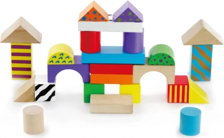 Verschiedene Formen – Würfel, Zylinder, Bögen und Dächer – regen die Fantasie an und unterstützen Feinmotorik sowie räumliches Denken.