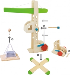Der Kran ist eine hervorragende Wahl zur Förderung der Koordinationsfähigkeiten, der Geduld und des logischen Denkens. Dank der stabilen Basis mit vier Füßen steht er fest an seinem Platz und benötigt keine Batterien – für Spaß sorgt die kindliche Fantasie.
