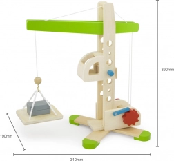 Entdecken Sie einen hochwertigen Holzkran für kleine Baumeister ab 3 Jahren. Dank der funktionierenden Seilwinde und Umlenkrolle können Kinder Lasten mühelos heben und absenken und dabei ihre Feinmotorik und Fantasie fördern. Die stabile Konstruktion mit solider Basis gewährleistet sicheres Spielen. Die kompakten Abmessungen 31 × 39 × 19 cm passen in jedes Kinderzimmer.