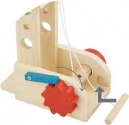 Durch einfaches Drehen des Aufwickelrädchens können Kinder die Last heben und senken. Der Mechanismus unterstützt die Hand-Auge-Koordination und bietet einen gleichmäßigen, sicheren Lauf.