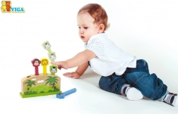 Durch das Drücken der Stifte trainieren Kinder Finger und Handgelenk, üben Präzision und verstehen das Prinzip von Ursache und Wirkung, wenn die Tierfiguren herausspringen.