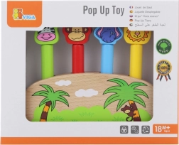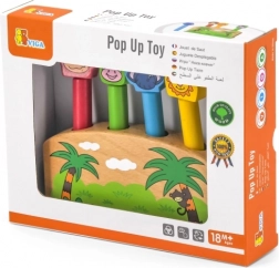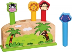 Dieses Holz-Pop-up-Spiel mit Tieren ist ein ideales erstes Motorikspielzeug. Kinder stecken die Tierstifte in die Öffnungen, und nach dem Drücken der Feder springen die Figuren fröhlich heraus. Die robuste Holzbasis mit Dschungelmotiv und die freundlichen Tiere laden zu wiederholtem Spielen ein und fördern Geduld sowie Konzentration.