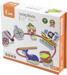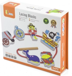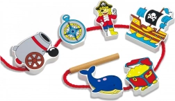 Entdecken Sie den Zauber eines Piratenabenteuers mit einem hochwertigen Holz-Auffädelset. Bunte Blöcke mit Motiven wie Pirat, Schiff oder Anker motivieren Kinder zum Gestalten und helfen, Griff, Konzentration und Geduld spielerisch zu trainieren. Durch das Auffädeln auf die Schnur üben Kinder Präzision und Koordination und haben dabei viel Spaß.