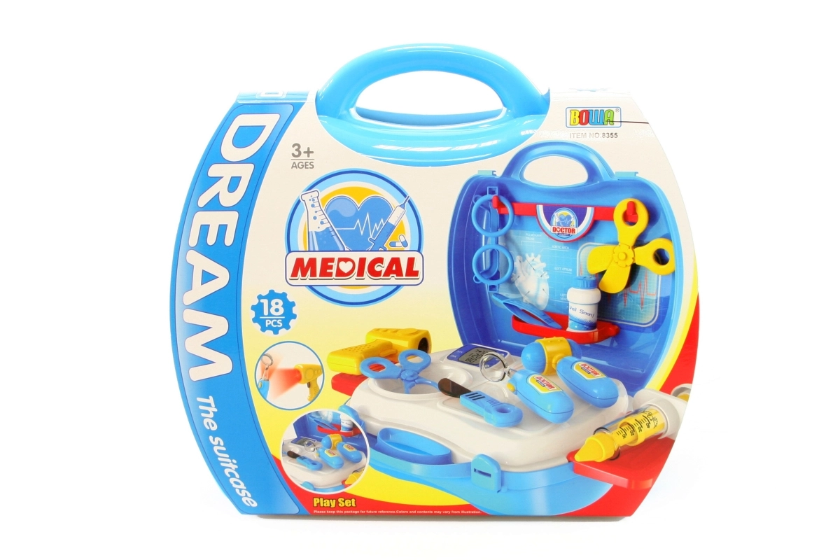 Im Lieferumfang enthalten ist vielfältiges Zubehör: Brille, „Pillen“, ein Paar Scheren und 7 weitere medizinische Instrumente. Das bunte Zubehör sorgt für realitätsnahes Spiel und regt die Kreativität an. Alles lässt sich leicht im Koffer verstauen, sodass kein Teil verloren geht.