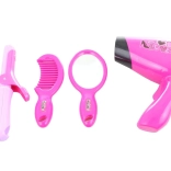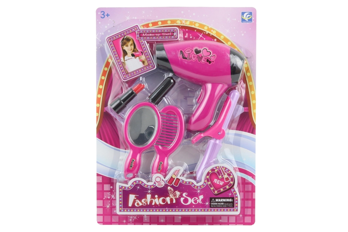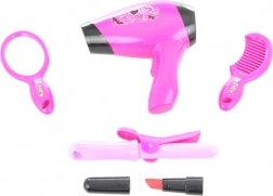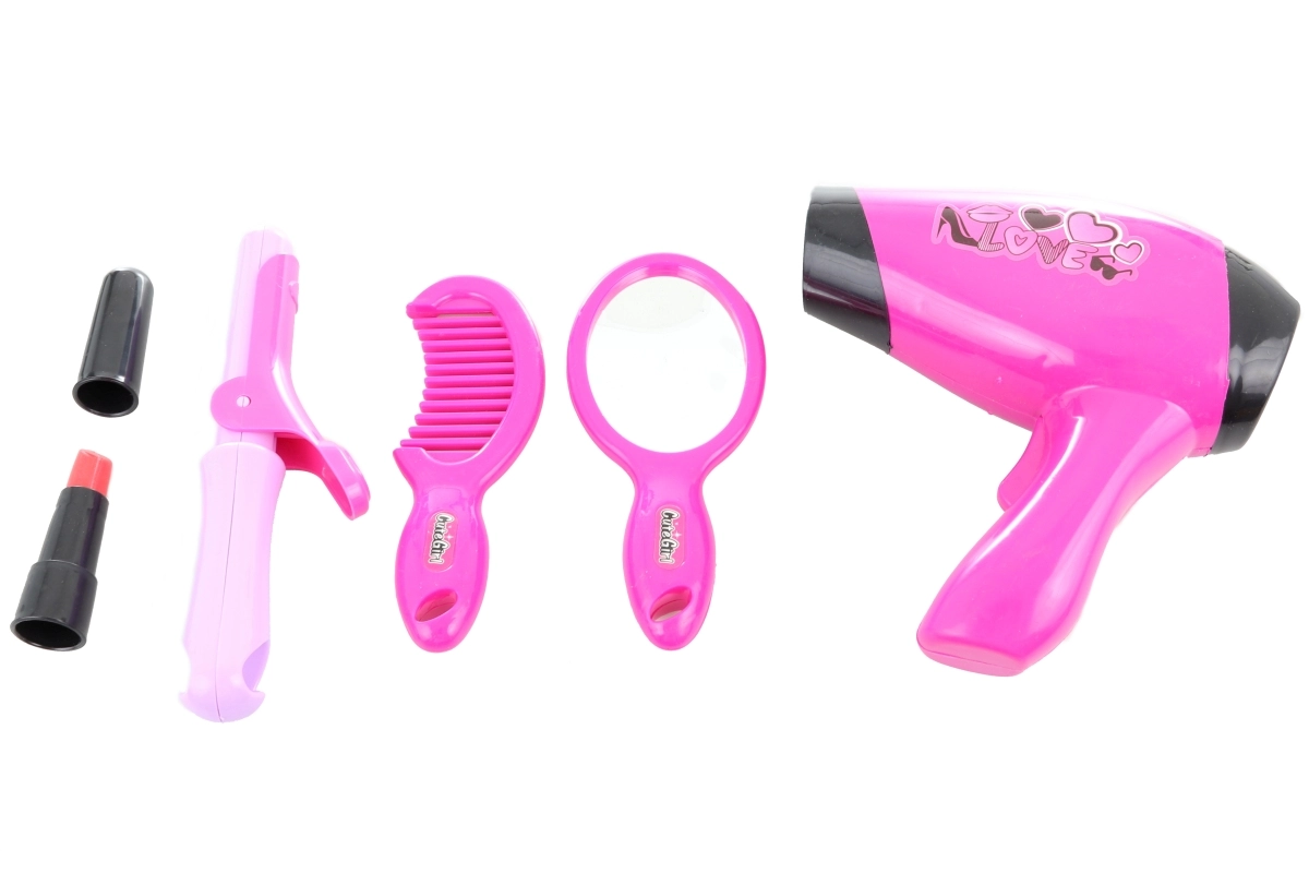 Dieses rosa Schönheitset bietet Kindern alles, was sie für erste Friseur-Experimente benötigen. Der mit 1× AA-Batterie (nicht enthalten) betriebene Föhn wird ergänzt durch einen Lockenstab, einen Kamm, einen Handspiegel und Kosmetik-Accessoires – alles abgestimmt auf kleine Kinderhände.