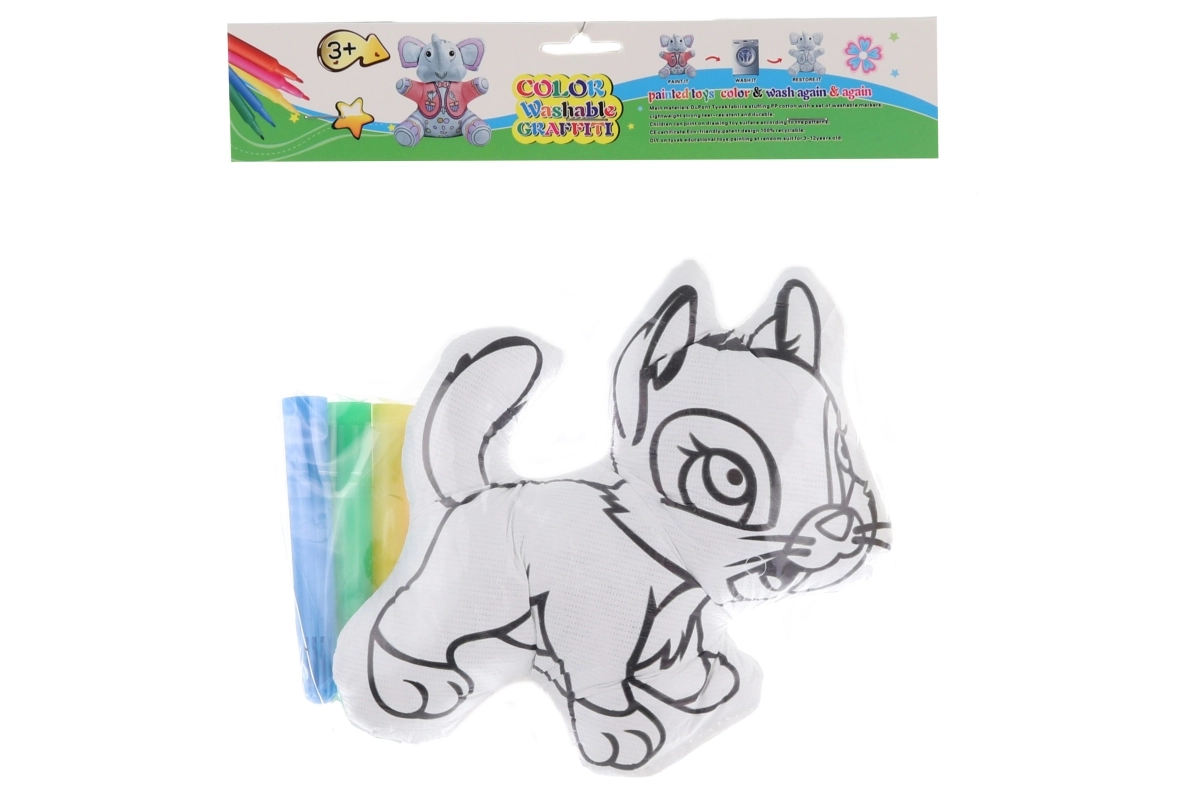 Im Set finden Sie 4 Filzstifte, die für das Bemalen der Spielzeugoberfläche geeignet sind. Nach dem Waschen der Katze können die Stifte wiederverwendet werden, um jedes Mal ein neues Design zu gestalten. Die sichere Ausführung und das weiche Material machen dieses Spielzeug zu einem tollen Geschenk für kleine Künstler.