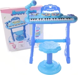 Blaues Kinderklavier bietet nicht nur klassische Töne, sondern auch verschiedene Hintergrundmelodien und die Möglichkeit, zwischen Musikinstrumenten zu wechseln. Im Lieferumfang sind ein Mikrofon und ein Anschluss für MP3-Player enthalten.