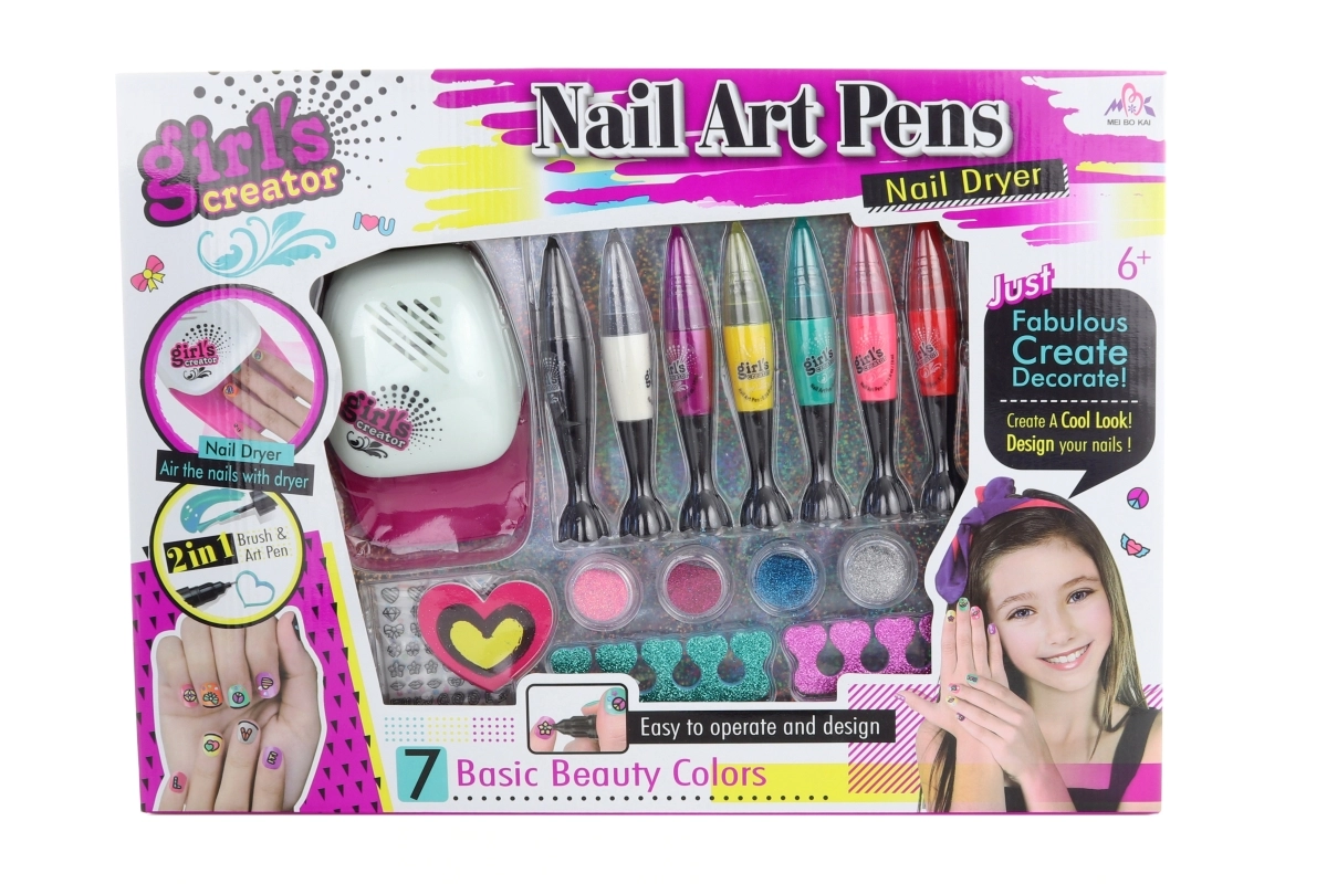 Im Lieferumfang ist alles enthalten, was Sie für eine komplette Maniküre benötigen – von Feile und Zehentrennern bis hin zu Glitzer und Aufklebern für ein effektvolles Finish. Das perfekte Geschenk für kleine Mode- und Bastelliebhaberinnen.