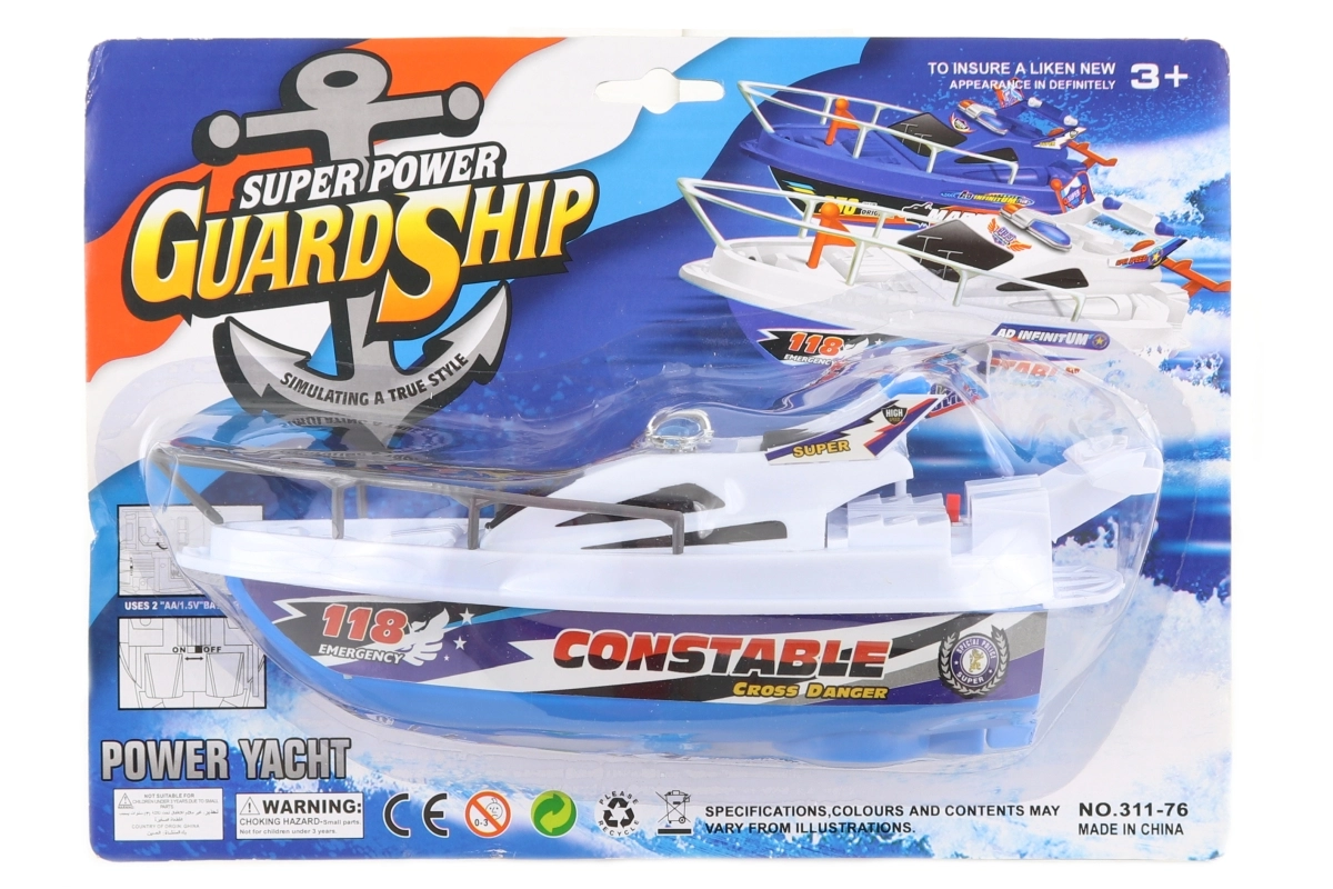 Das Boot wird mit 2× AA-Batterien betrieben (nicht im Lieferumfang enthalten). Wir empfehlen hochwertige Alkalibatterien für eine längere Laufzeit und das Spielzeug nach dem Einsatz im Wasser zu trocknen.