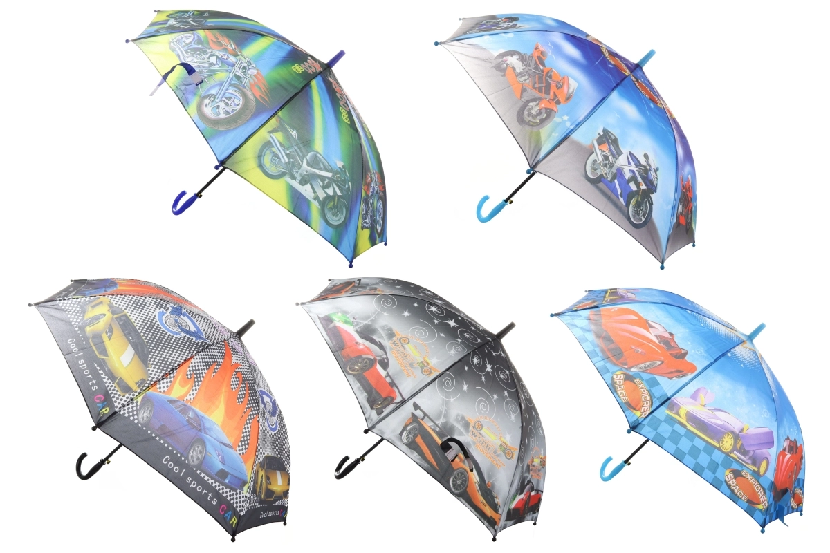 Genießen Sie zuverlässigen Schutz vor Regen mit einem Schirm, der durch sein attraktives Design mit Autos und Motorrädern überzeugt. Dank des automatischen (schnell öffnenden) Mechanismus öffnen Sie ihn mit nur einem Knopfdruck – ideal bei plötzlichen Schauern sowie auf dem Weg zur Schule oder zur Arbeit.
