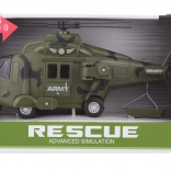 Militärischer batteriebetriebener Hubschrauber mit Licht und Sound. Der Hubschrauber verfügt über einen Aufziehhaken, einen drehbaren Rotor und ein schwenkbares Frontlicht. Stromversorgung: 3x AG13 (im Lieferumfang enthalten). Hubschraubergröße ca. 28 x 14 cm. Verpackungsmaße ca. 32 x 12 x 19 cm. Alter 3+.