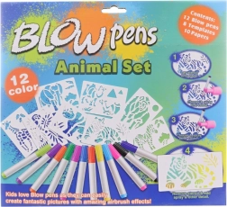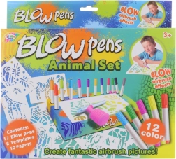 Mit diesem großen Blasstifte-Set erstellen Kinder mühelos originelle Bilder mit Safari-Tieren. Dank des Aufsatzes mit Pumpe ist kein starker Atem nötig – die Farbe wird in einem feinen Strom aufgetragen und erzeugt beeindruckende Verläufe und Schattierungen. Der praktische Ständer mit Halterung sorgt für Ordnung und Übersicht.