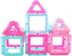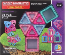 Genießen Sie stundenlangen kreativen Spaß mit diesem magnetischen Konstruktionsspielzeug. Das Set enthält 30 Teile, die sich dank magnetischer Kanten leicht verbinden lassen. Die bunten Teile in Rosa, Blau und Türkis sind transparent und sehen beeindruckend aus beim Zusammenbau verschiedener 3D-Objekte.