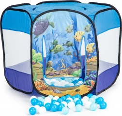 Leichtes und stabiles Pop-up-Zelt für Kinder mit Unterwasserwelt-Motiv verwandelt jedes Zimmer und jeden Garten in einen spaßigen Spielplatz. Enthalten sind 100 bunte Bälle, luftige Netzwände, ein aufrollbarer Eingang und ein Fenster im Dach. Die selbstaufbauende Konstruktion sorgt für schnellen Aufbau und einfaches Tragen.