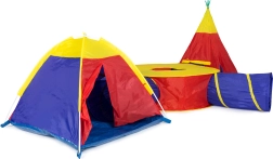 Kinder lieben das Durchkriechen der 4 Tunnel, das Versteckspiel im Iglu und die geheime Basis im Tipi mit Fenster und verschließbarem Eingang. Das Rundzentrum mit oberer Belüftung verbindet alle Teile und fördert das Teamspiel. Das Material aus robustem Polyester hält dem täglichen Gebrauch zu Hause, auf der Terrasse und im Garten gut stand.