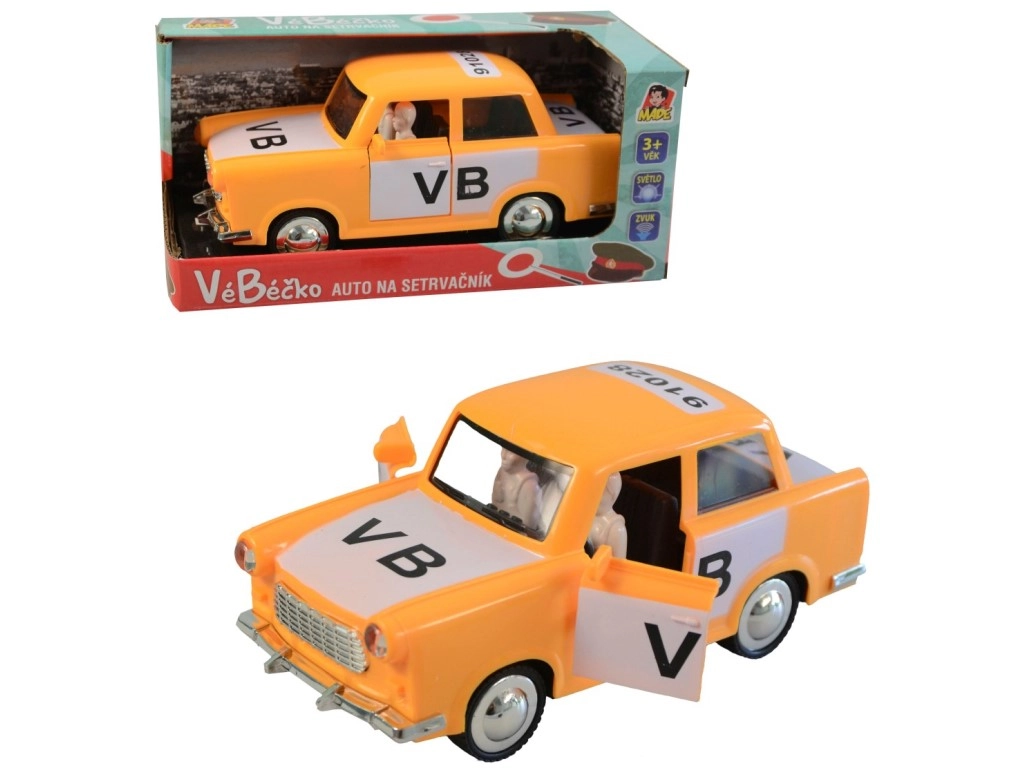 Stilvolles Retro-Auto „VB“ bringt die Atmosphäre der Fahrzeuge der Öffentlichen Sicherheit im Maßstab 17 cm. Es bietet Schwungradantrieb, öffnende Türen und gibt beim Drücken einen Motorsound von sich. Ideales Geschenk für kleine und große Fans klassischer Modelle, einschließlich tschechischer Verpackung.