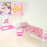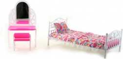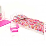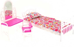 Entdecken Sie das charmante Glorie-Set mit einem Puppenbett inklusive weichem Überwurf und Kissen, einem Schminktisch mit Spiegelfolie und einem praktischen Stuhl. Es passt hervorragend zu den meisten gängigen Puppen und ergänzt ihr Zimmer um einen gemütlichen Platz zum Ausruhen und Schmücken.