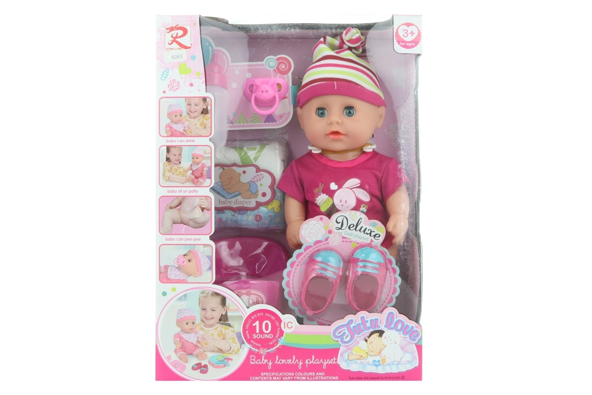 Im Lieferumfang ist alles enthalten, was kleine Pflegekräfte brauchen – von Schühchen und Lätzchen bis hin zu Fläschchen und Teller. Die Puppe hat kompakte Maße von 30 × 12 cm und liegt gut in Kinderhänden. Mit den beiliegenden AG13-Batterien ist sie sofort spielbereit.