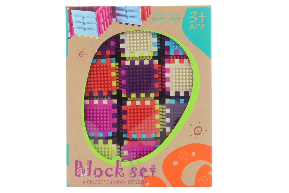 Jeder Stein ist ungefähr 5 × 5 × 5 cm groß und sorgt so für einen bequemen Griff und sicheres Spielen ab 3 Jahren.