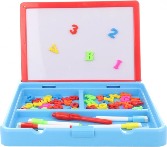 Entdecken Sie kreativen Spaß für Kinder mit dieser Zeichen- und Magnettafel 2-in-1, die Zeichnen mit dem Lernen von Buchstaben und Zahlen verbindet. Enthalten sind ein Leuchtstift, 5 bunte Marker, 26 magnetische Buchstaben und 26 magnetische Zahlen – ideal zur Förderung von Vorstellungskraft, Feinmotorik und spielerischem Lernen.