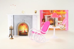 Zum Lieferumfang gehören ein Schaukelstuhl für bequemes Sitzen der Puppen, ein Tisch mit dekorativer (nicht funktionaler) Lampe sowie ein Ständer mit Kaminwerkzeug. Dekorationen wie Kerzenhalter, Bild und Uhr sorgen für perfekte Atmosphäre. Dank der Ausführung aus Kunststoff ist das Set leicht, pflegeleicht und sicher für Kinder.